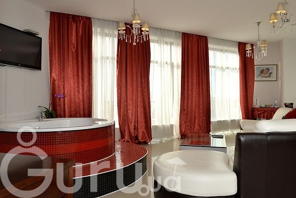 Апартаменты расположены в пентхаусе бизнес-центра «Панорама», в самом центре исторической части Киева.